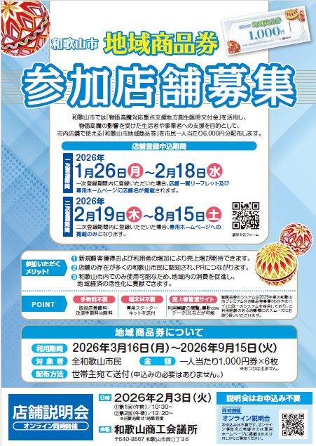 【和歌山市】和歌山市地域商品券事業における参加店舗募集について