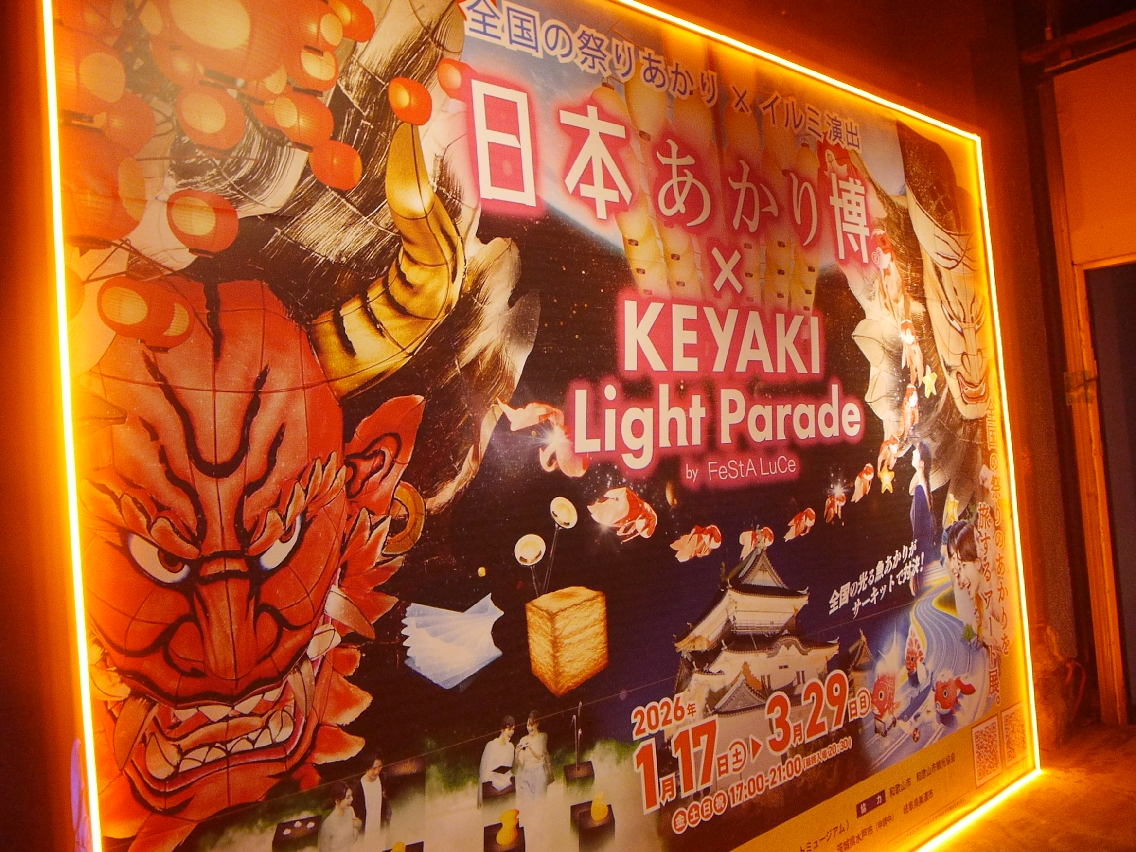 - 和歌山初となる、全国の祭りのあかりを旅するアート展「日本あかり博×KEYAKI Light Parade by FeStA LuCe」が和歌山城近くのNTT西日本和歌山支店1階において開催中です。